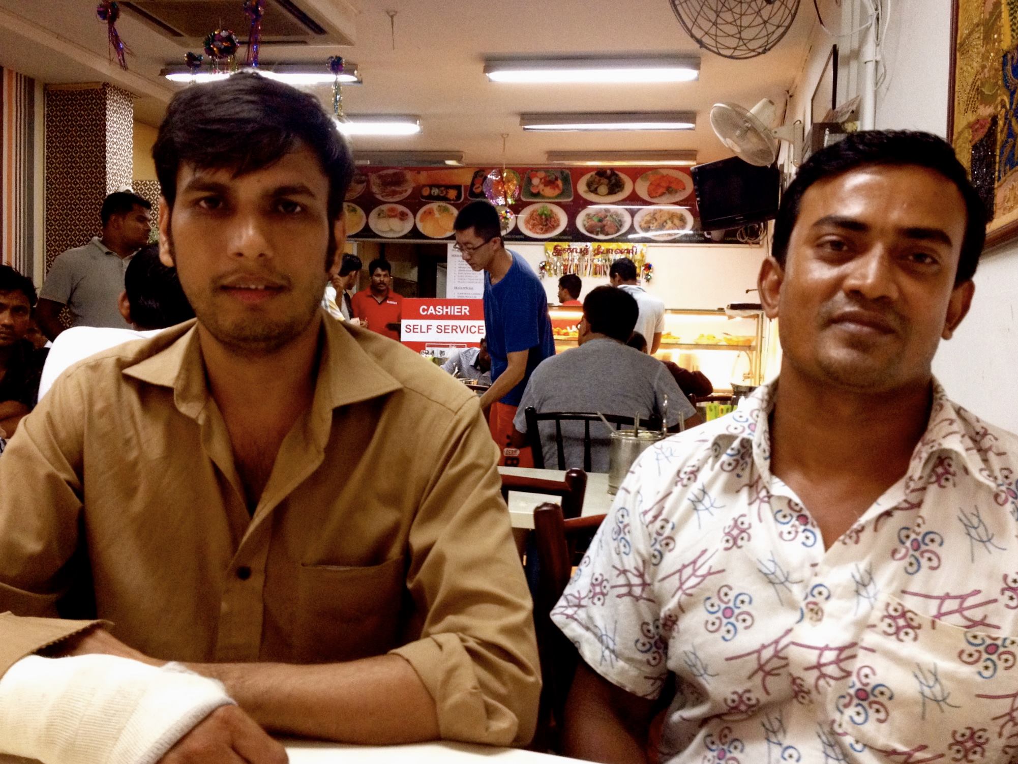 Crowded into Alankar’s restaurant with Khan are others like him – foreign workers who are stranded in Singapore, unable to work and earn wages due to occupational injuries, unable to pay their health care bills or get further medical attention, and unable to return home or repay the people there who loaned them money to hire an agent for the overseas jobs they no longer have.